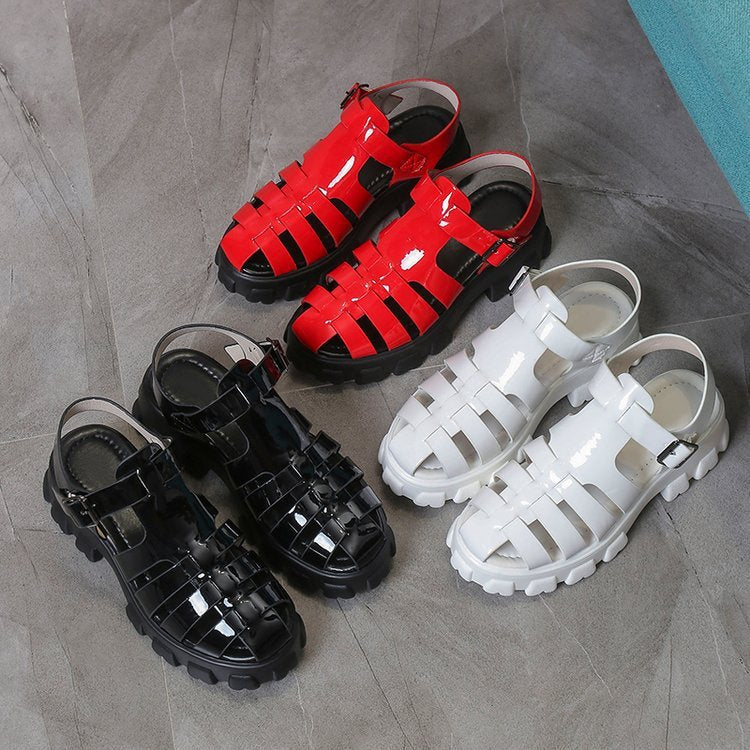 Osez l’allure audacieuse avec ces sandales à plateforme, sublimées par un rouge éclatant. Leur design en cuir PU brillant et leur structure ajourée offrent un équilibre parfait entre originalité et élégance.