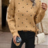 Ce pull arbore un design moderne et féminin, grâce à ses petits pois contrastants sur un fond beige doux. La coupe est légèrement ample, avec des manches longues et un col rond, offrant un équilibre parfait entre confort et style. Les pois noirs ajoutent une touche ludique et élégante, tandis que la nuance neutre du pull le rend très facile à assortir avec une grande variété de tenues. Les finitions aux poignets et à la base soulignent la qualité de la confection et apportent une jolie structure au vêtement.