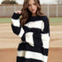 Ce pull en mélange de laine présente un motif à rayures et à carreaux décliné en coloris noir et blanc ou noir et rose, alliant élégance et décontraction dans un style casual d'inspiration japonaise et coréenne, et se distingue par des éléments contrastés, disponible en tailles S, M, L et XL.