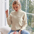 Nouveau pull court automnal pour femme, uni, à col montant et à poche.
